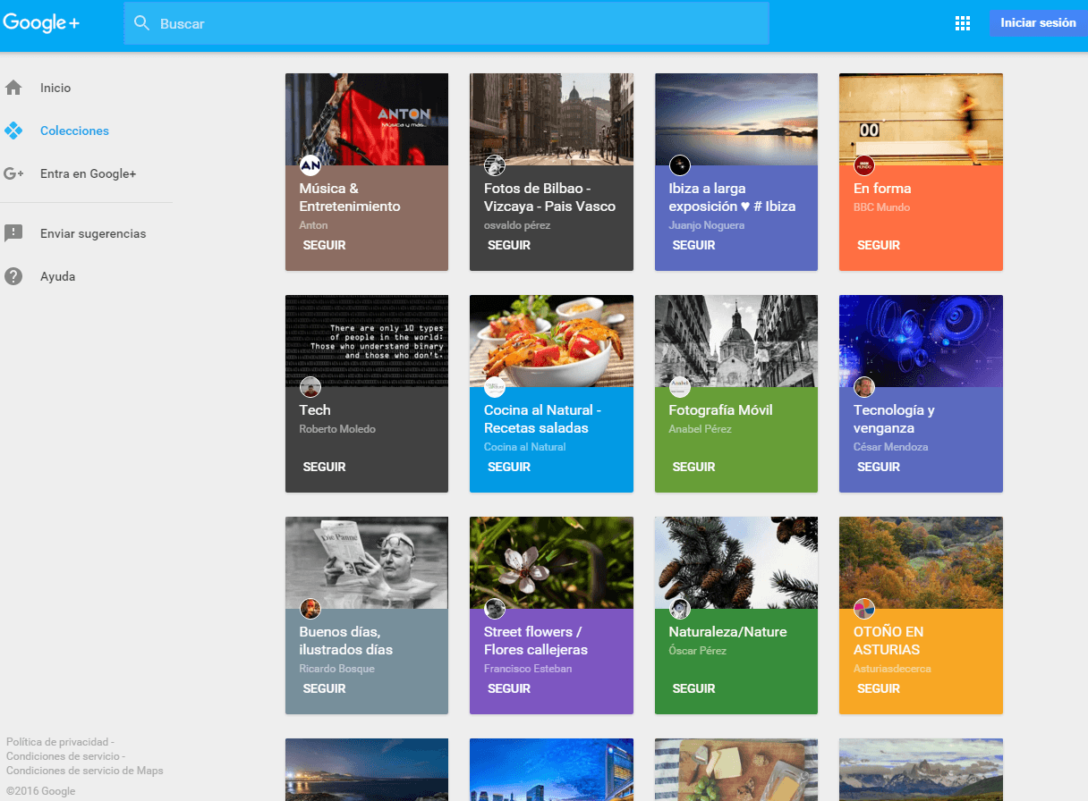 Pronunciado como Google plus y a menudo abreviado como G+ es la red social que Google lanzó en 2011. Pensado para competir con Facebook es, de momento, la segunda red social más grande del mundo. A finales de enero de 2013 Google+ superaba los 90 millones de usuarios, aunque no obstante algunos estudios demuestran que el tiempo que cada usuario dedica a esta red es nimio comparado con el que los usuarios invierten en Facebook o Twitter. Lo cierto es que Google+ no es el primer intento de incursión en redes sociales que Google lanza. Hasta tres tentativas en esta dirección que no tuvieron el éxito esperado: Orkut (2004), Wave (2009) y Buzz (2010). Eric Schimidt, el director general en aquel momento reconoció ser el responsable de haber hecho perder a Google su oportunidad en redes sociales; «I clearly knew I had to do something and I failed to do it. (...) CEOs need to take responsibility. I screwed up» Lo que en español se traduce como “Claramente sabía que tenía que hacer algo pero no he logrado hacerlo. Un director general debe asumir su responsabilidad. La jodí”. google+ La comunicación es una de las necesidades básicas del ser humano. Las personas nos comunicamos unas con otras con una sonrisa, una carcajada, un susurro o un saludo. Hoy en día, las personas se comunican, cada vez más, a través de la red pero, sin embargo, las interacciones de la vida real pierden su espontaneidad debido a la rigidez de las herramientas online. Es por esto que, desde Google, se pretende dar un toque más humano al software, tratando de mejorar y, para esto, es importante incluir a las personas, sus intereses y relaciones. De esta forma es como da comienzo Google+. Como se dijo anteriormente, en Google+ se pueden encontrar círculos, intereses o quedadas, además de la utilización del móvil (hangouts).
